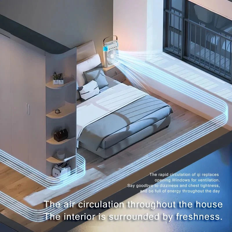 Upgrade your summer comfort with this compact and versatile Air Conditioner Portable 3 in 1 Fan Mini Cooler. Designed for ultimate convenience, this powerful mini device functions as a desktop cooling fan, humidifier, and night light all in one. Perfect for small spaces such as bedrooms, living rooms, offices, dorms, and desktops, it delivers refreshing mist and cool air whenever and wherever you need it.